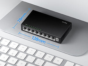 Bộ chuyển mạch 8-FE với vỏ meta lý tưởng cho việc mở rộng mạng có dây trong môi trường gia đình và văn phòng.